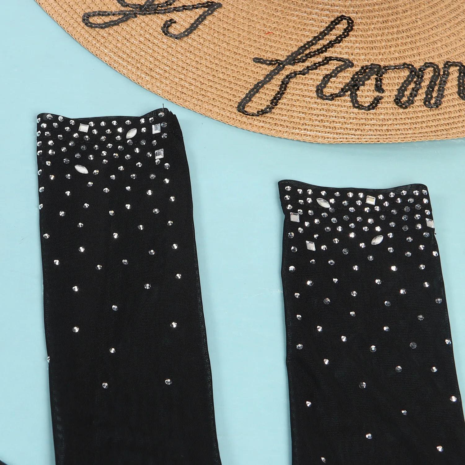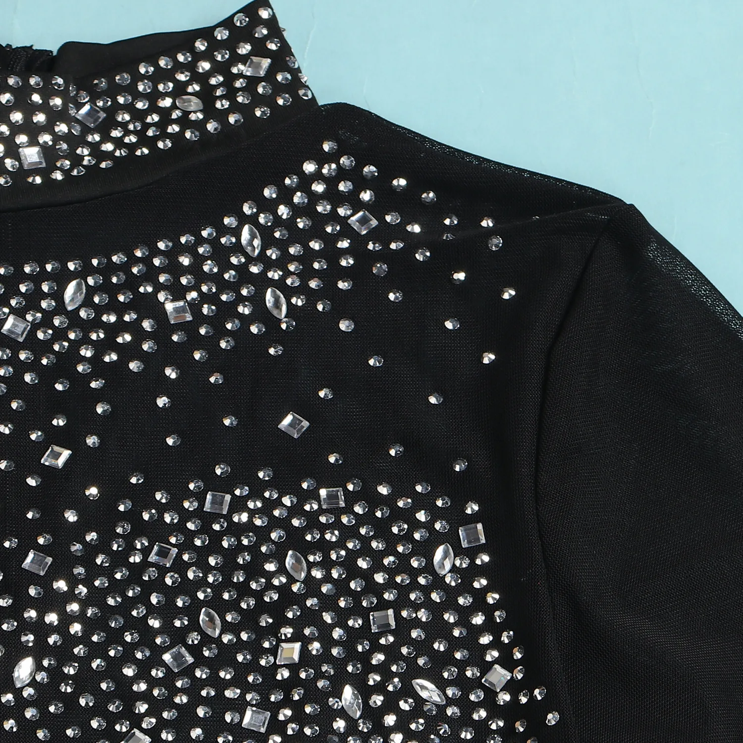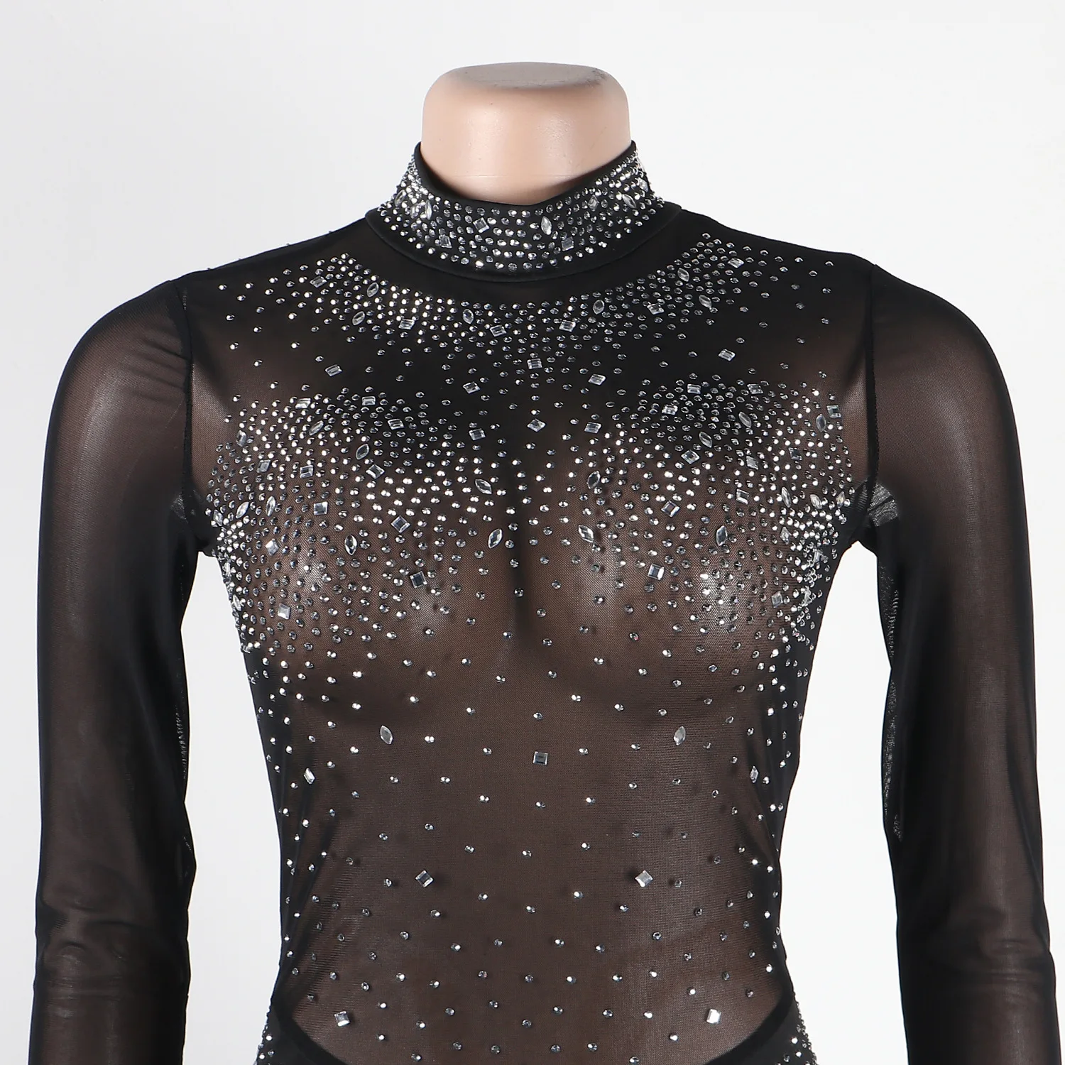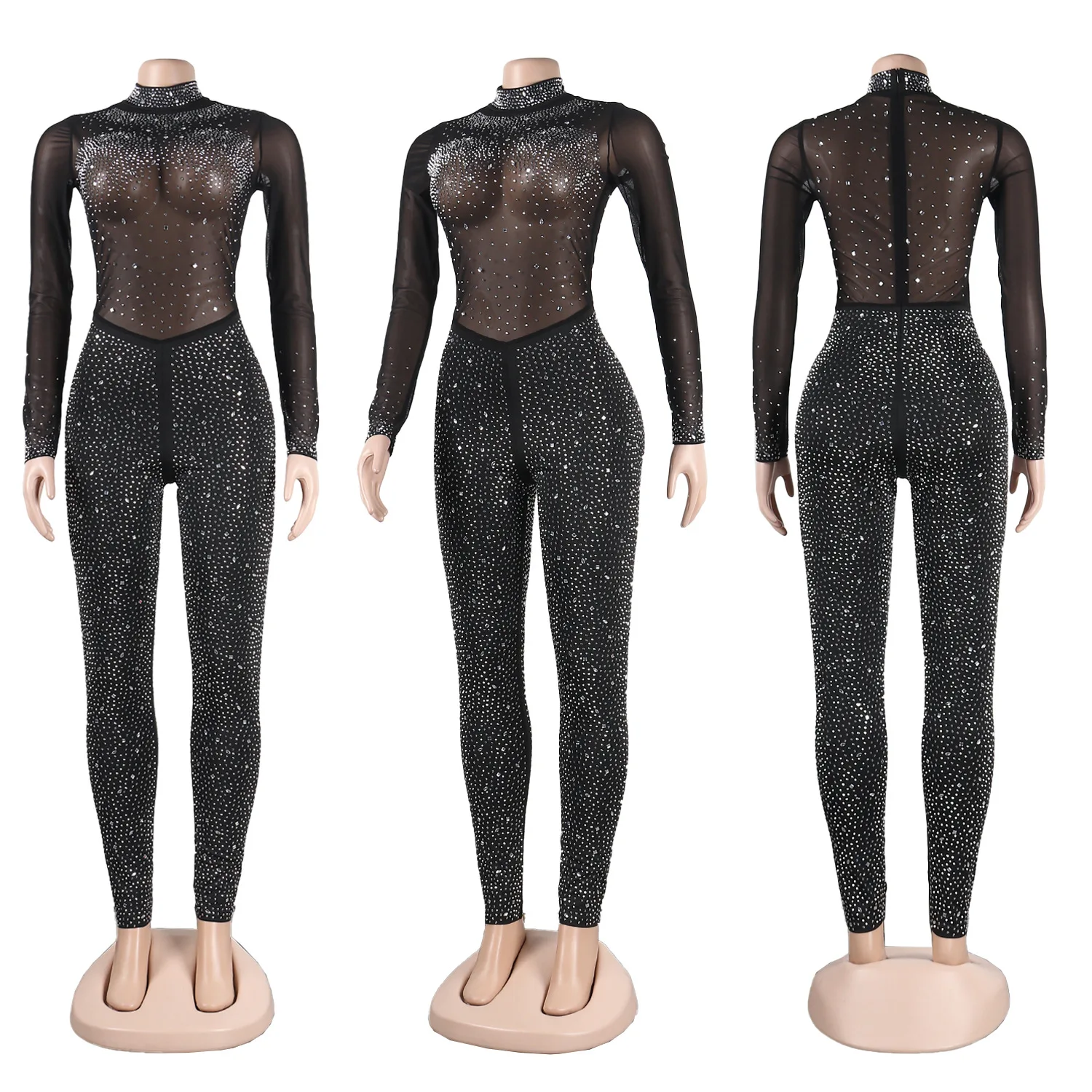 Sexy Party Jumpsuits Women 2024 Autumn Solid Mesh Diamond Fashion Long Sleeve Pants Jumpsuit Clubwear Female Overalls Streetwear